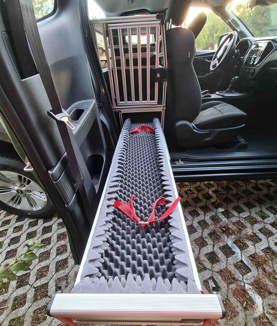Bei der Sonderausstattung des Fahrzeugs lassen sich die Fahrzeugtüren des Modells LS Space Cab entgegengesetzt im 90-Grad-Winkel öffnen. Dadurch kann mühelos auf die abschließbare Alu-Waffenschublade und das Alu-Schubladensystem auf der Rückbank zugegriffen werden. Eine Hunde-Transportbox gewährleistet die ordnungsgemäße Sicherung des tierischen Begleiters. Je nach Bedarf lassen sich die einzelnen Module problemlos ein- und ausbauen.